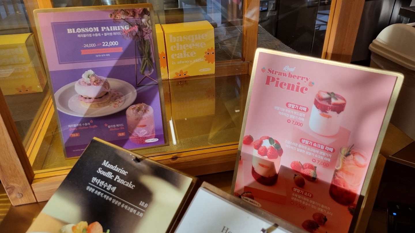 체리블라썸 수플레와 블라썸 에이드도 있습니다. 두 개 세트로 22000원입니다.
