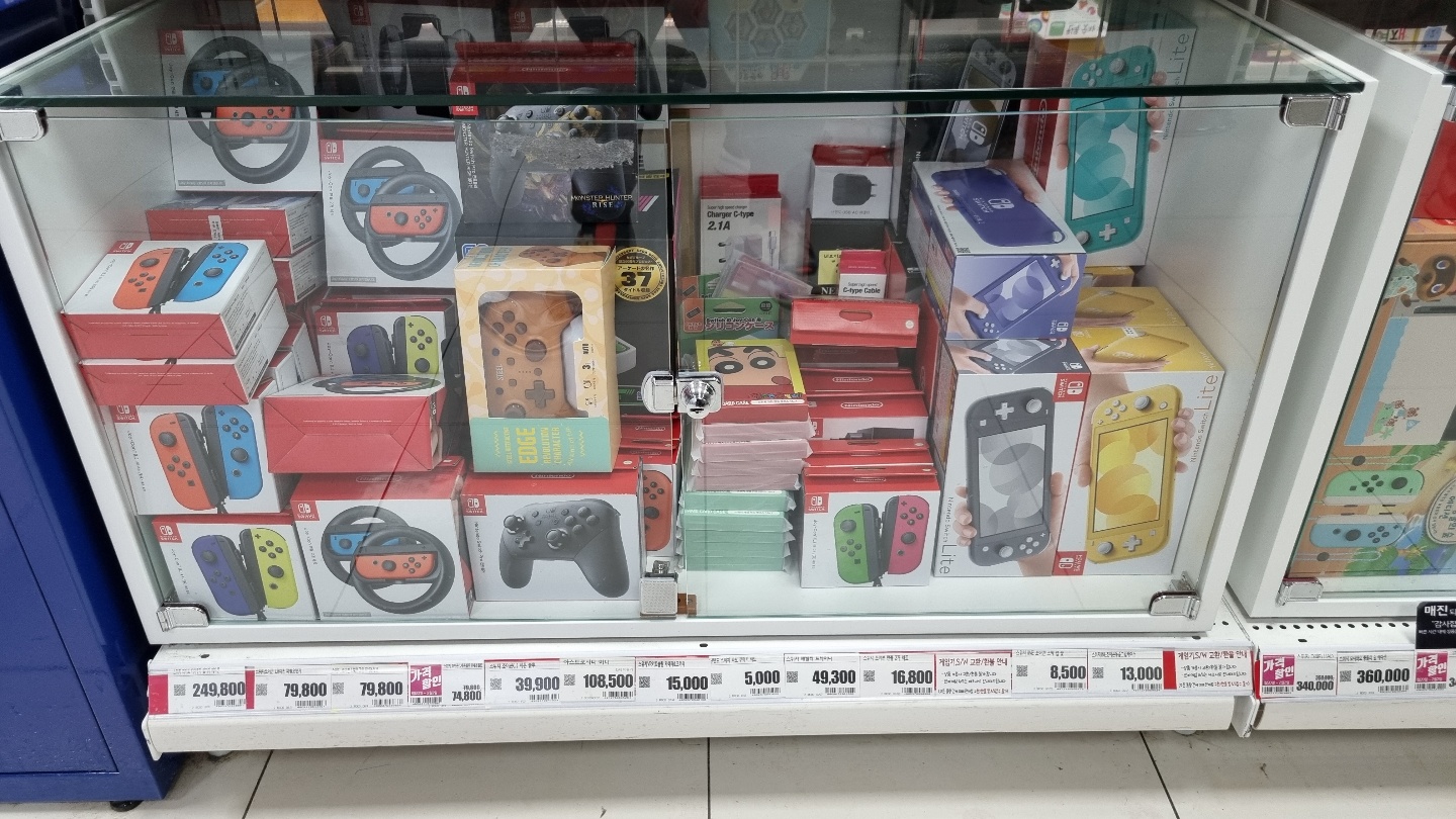 | AC 어댑터 충전기 : 33800원 충전 스탠드(프리스톱 방식) : 18800원 조이콘 네온레드/네온블루 : 79800원 젤다무쌍 대재앙의 시대 : 54800원 포켓몬스터 소드 : 64800원 | 포켓몬스터 실드 : 64800원 포켓몬스터 소드&실드 익스팬션 패스 : 24900원 마리오골프 슈퍼러시 : 64800원 젤다의 전설 스카이워드 소드 : 54800원 |
