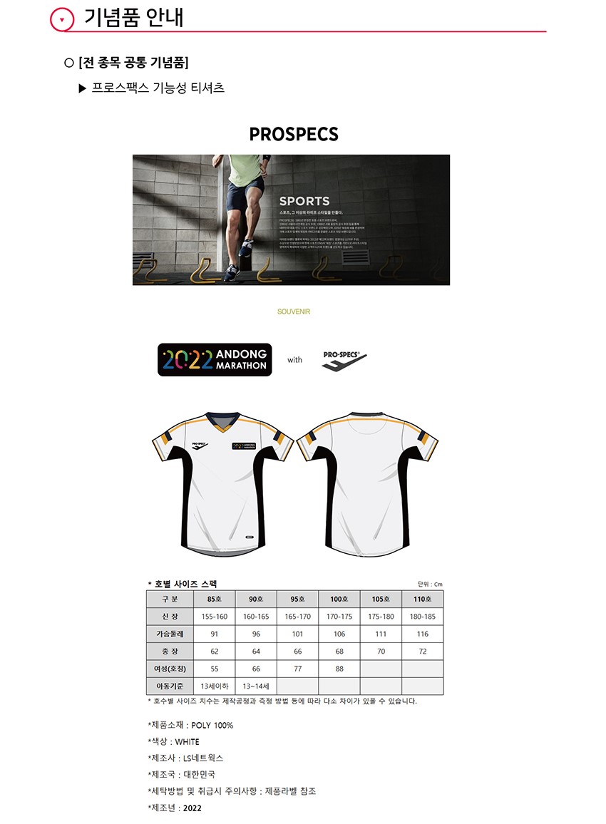 2022 안동마라톤대회 오프라인 참가신청하기_대회일정_기념품_프로스펙스티셔츠