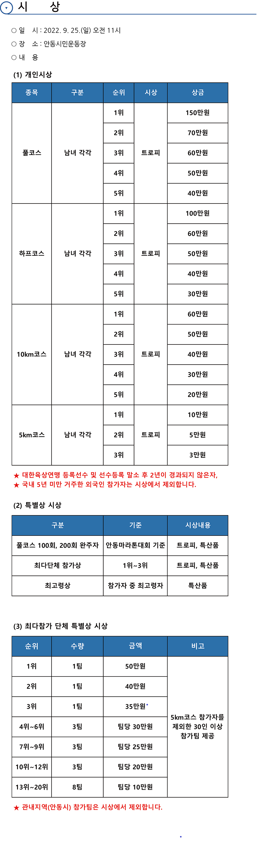 대회 일시 : 2022년 9월 25일 일요일 오전 9시~